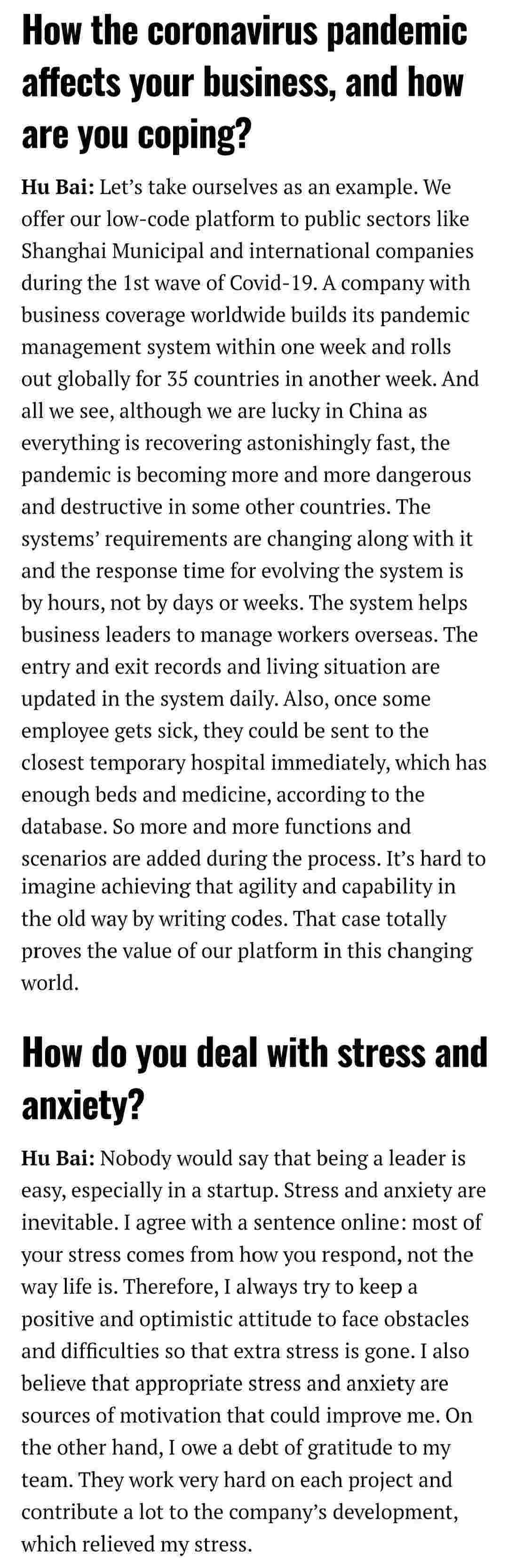 2021年年初,,,,,,,,,,,爱湃斯科技CEO胡柏受邀接受法媒Startup.info的专访,,,,,,,,,,,,,,,与Startup info的读者分享了自己的创业经历、、、、、以及低代码平台小米钱包的创新之处。。。。。。。。。。。。
